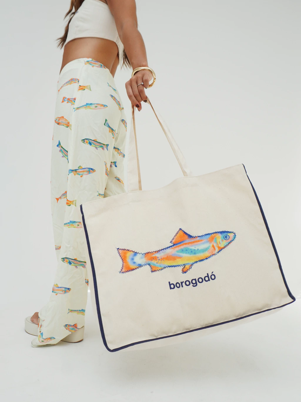 Bolsa em um tom de cru, com a alça de dois dedos e super espaçosa pra você usar em vários momentos.
