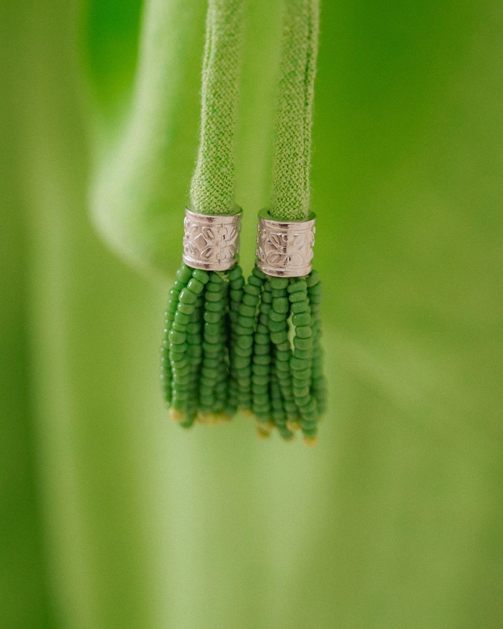 Calça pantalona em linho na cor verde, com elástico no cós e cadarço.